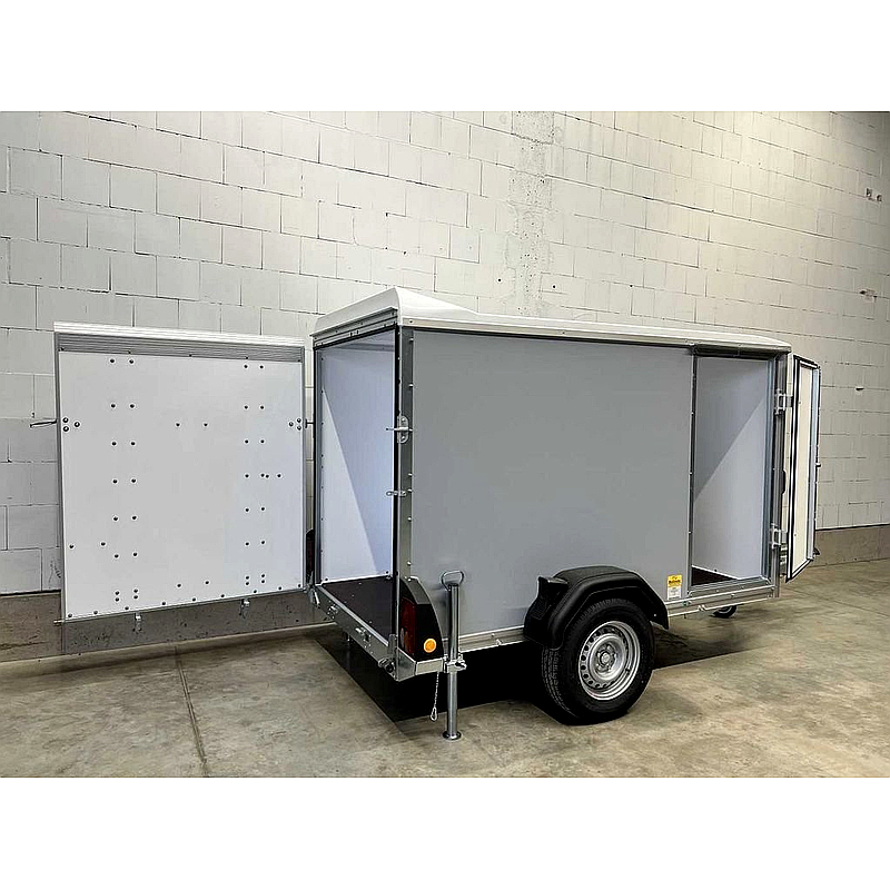 El remolque cerrado Böckmann KT 2513/135 es ideal para el transporte seguro y organizado de cargas. Este modelo es perfecto para aplicaciones que requieren robustez y comodidad, como el transporte diario de mercancías.