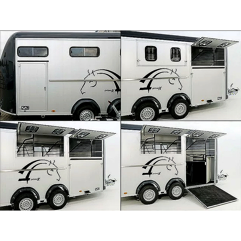 El Cheval Liberte Maxi 4 es un remolque de alta calidad diseñado para el transporte seguro y cómodo de 3 a 4 caballos, ideal para jinetes y criadores profesionales. Su construcción robusta y sus detalles bien pensados lo convierten en el compañero perfecto para el transporte exigente de caballos.
