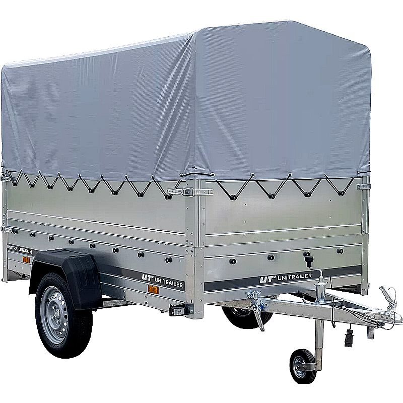 Este remolque cuenta con una plataforma basculante y paredes adicionales que ofrecen una flexibilidad excepcional. La lona alta con armazón protege eficazmente su carga. Cumple con todas las normativas legales para su uso en carretera.