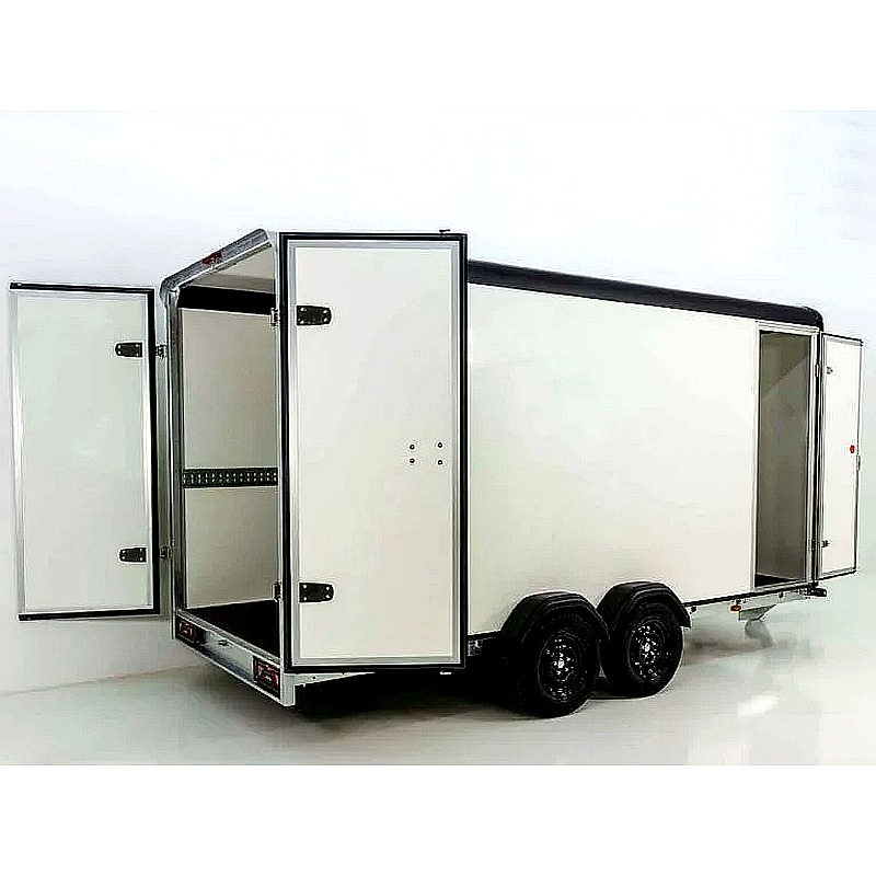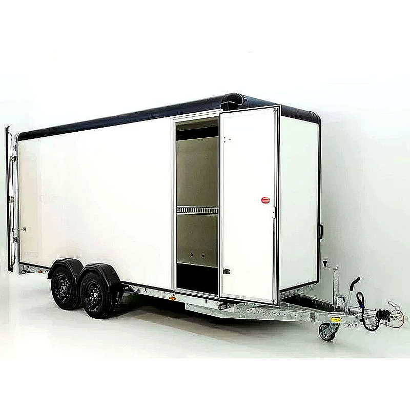 El Henra Boxvan Kofferanhänger es un remolque versátil, ideal para aplicaciones como mudanzas, transporte de muebles y maquinaria, así como para uso profesional. Su diseño con esquinas redondeadas minimiza la resistencia al aire, optimizando el consumo de combustible.