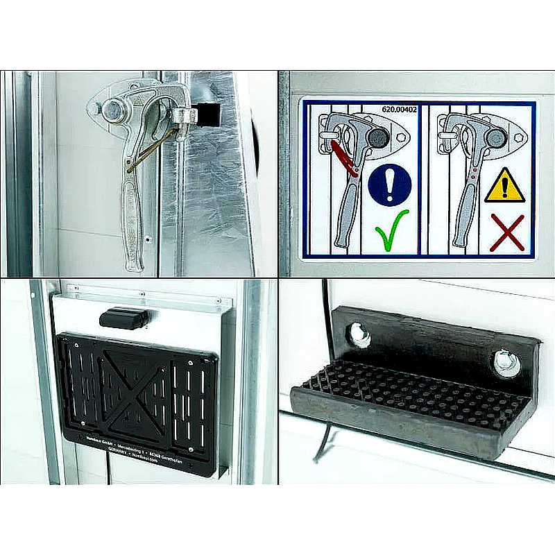 - Puerta de servicio con cerradura y compartimento para sillas con soporte extraíble.