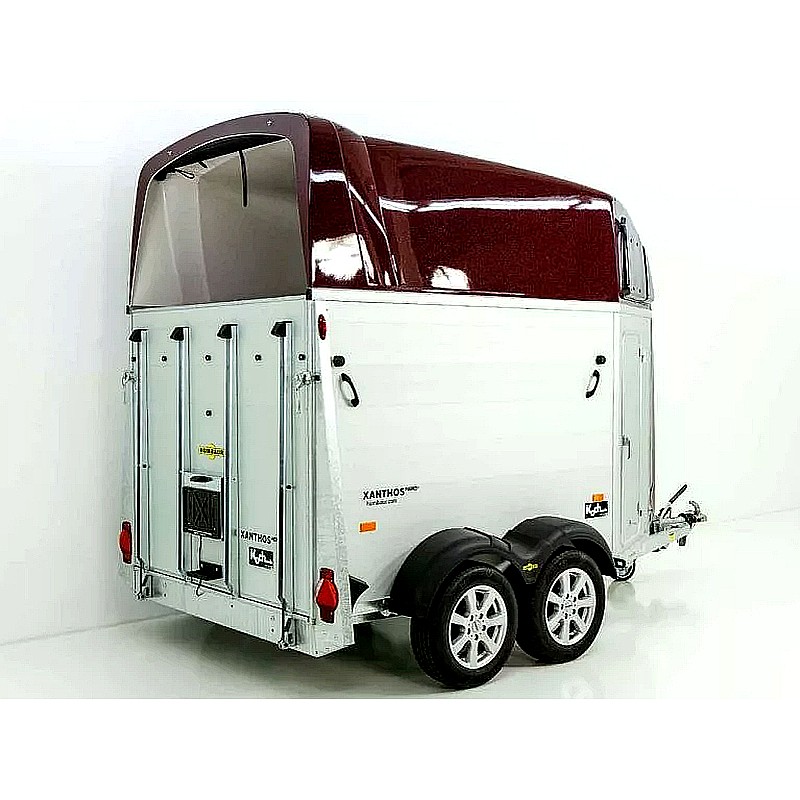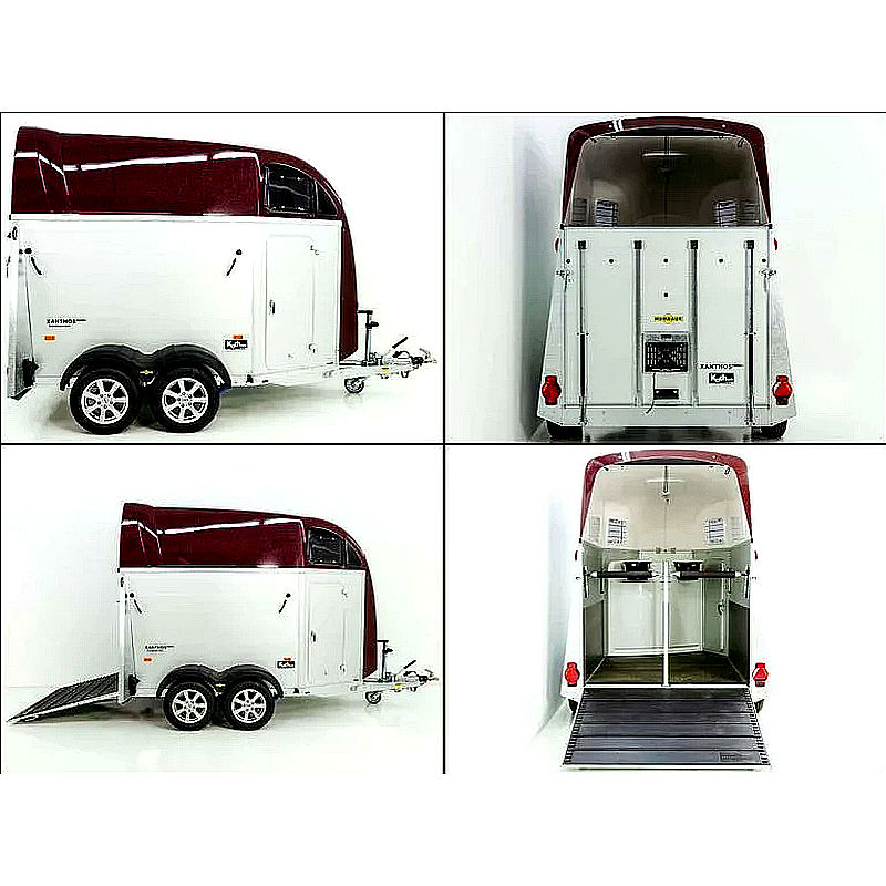 El Humbaur XANTHOS AERO 2400 es un remolque para caballos robusto y aerodinámico, ideal para transportar dos caballos grandes. Con dimensiones interiores de 171 cm de ancho, 315 cm de largo y 236 cm de alto, soporta un peso total de 2400 kg y una carga útil de 1570 kg.