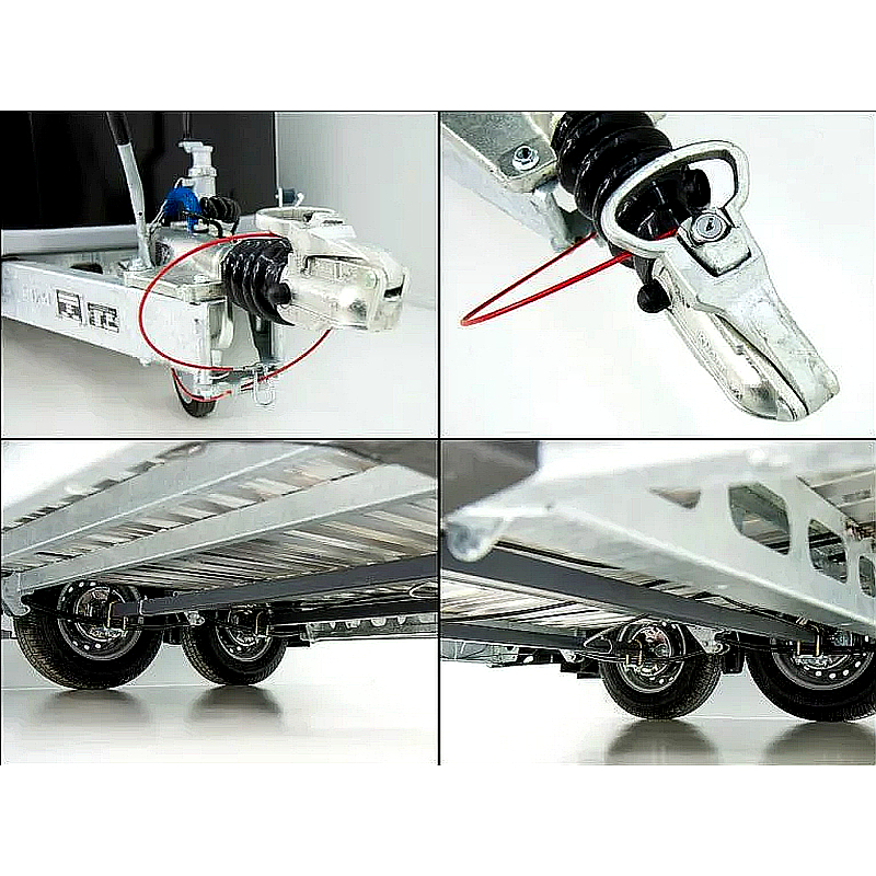 - Características adicionales: Puerta frontal, rampa/puerta trasera variable, claraboya en el techo para una ventilación óptima, iluminación LED interior, puertas con cerradura, liberación de pánico