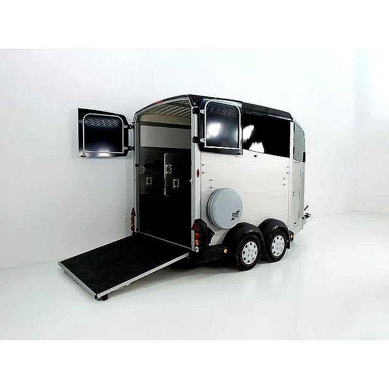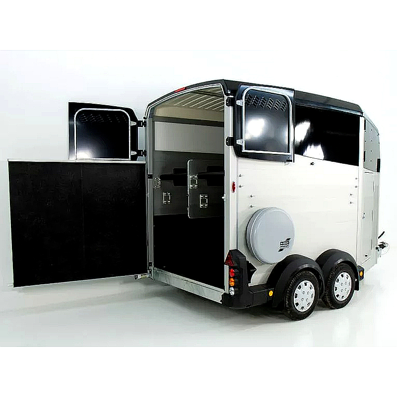 El Ifor Williams HBX 511 es un remolque moderno para 2 caballos, con dimensiones interiores de 363 x 179 x 229 cm, un peso de 970 kg y una capacidad de carga de 1730 kg. Es ideal para deportistas ecuestres y amantes de los caballos que buscan comodidad y seguridad.