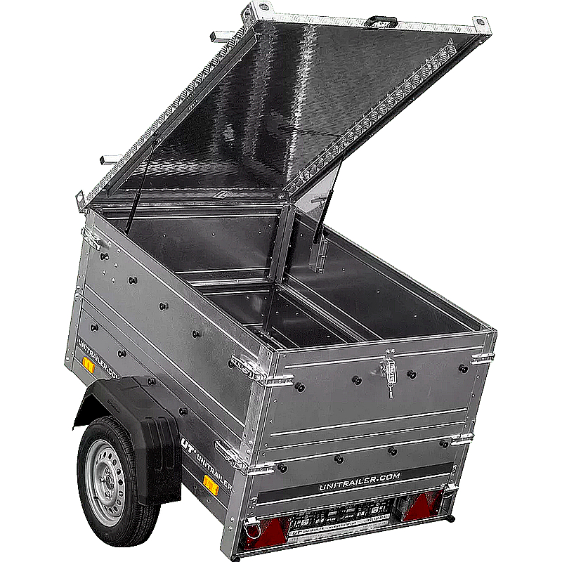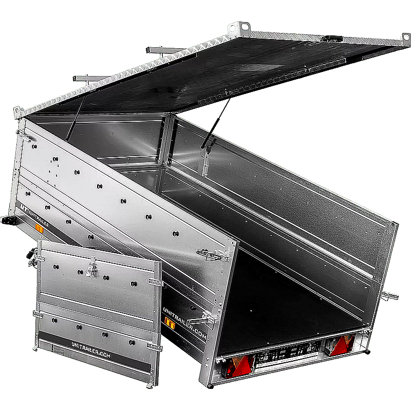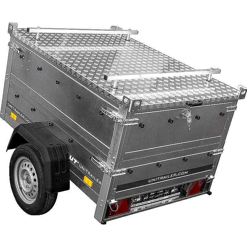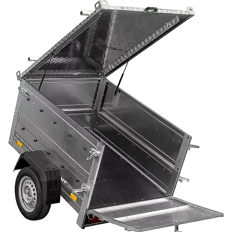 El UNITRAILER Garden Trailer 150 KIPP es un remolque versátil diseñado para facilitar el transporte seguro y cómodo de diversos bienes. Es ideal para aplicaciones como trabajos de jardinería, mudanzas y transportes comerciales. Su función de inclinación permite una descarga rápida y sencilla, mientras que la cubierta de aluminio protege la carga de las inclemencias del tiempo y del robo.