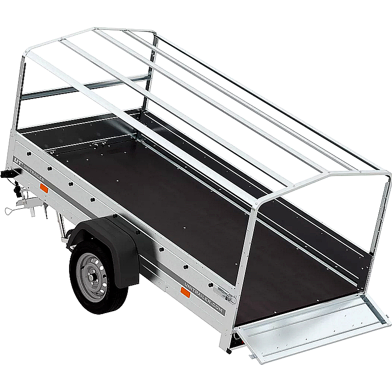 El UNITRAILER Garden Trailer 264 KIPP es un remolque basculante robusto y versátil, ideal para mudanzas, obras de construcción o transporte interno. Su diseño incluye una puerta trasera abatible que facilita la carga y descarga de materiales como muebles, materiales de construcción o residuos de jardín.