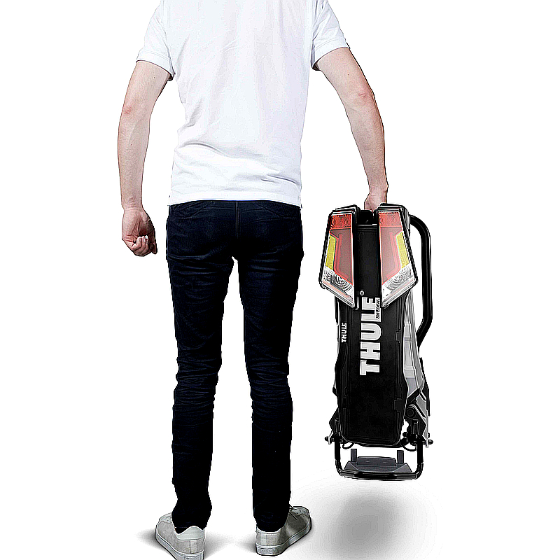 El Thule EasyFold XT 2 933 es un portabicicletas compacto y completamente plegable, diseñado para su uso en la bola de remolque del vehículo. Es ideal para transportar hasta dos bicicletas, incluyendo E-Bikes y mountainbikes pesadas, gracias a su alta capacidad de carga.